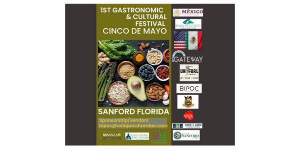In partnership with the Mexican Consulate in Orlando, Unfurl Collective, the city of Sanford and the leaders of the Sanford Community we are sponsoring the FIRST 5 DE MAYO GASTRONOMIC AND CULTURAL FESTIVAL. We are bringing investors from Overseas to invest in real estate and business in Central Florida.